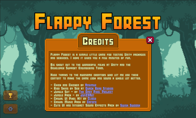 Flappy Forest is a simple infinite flapping game that I developed to test various Unity Gaming Services components.